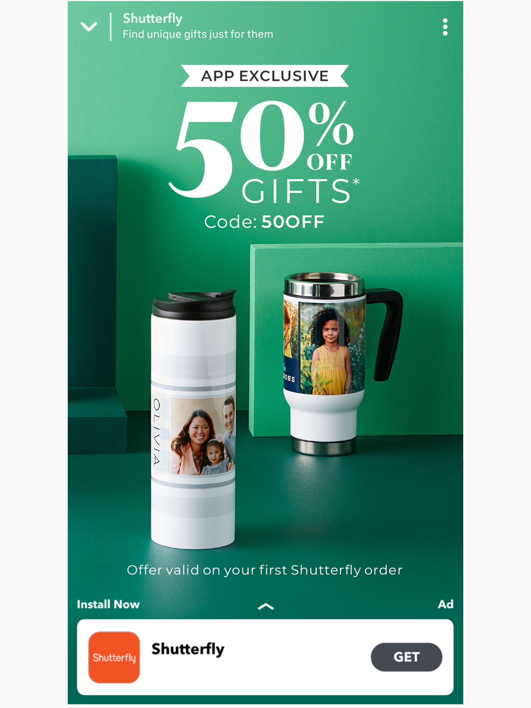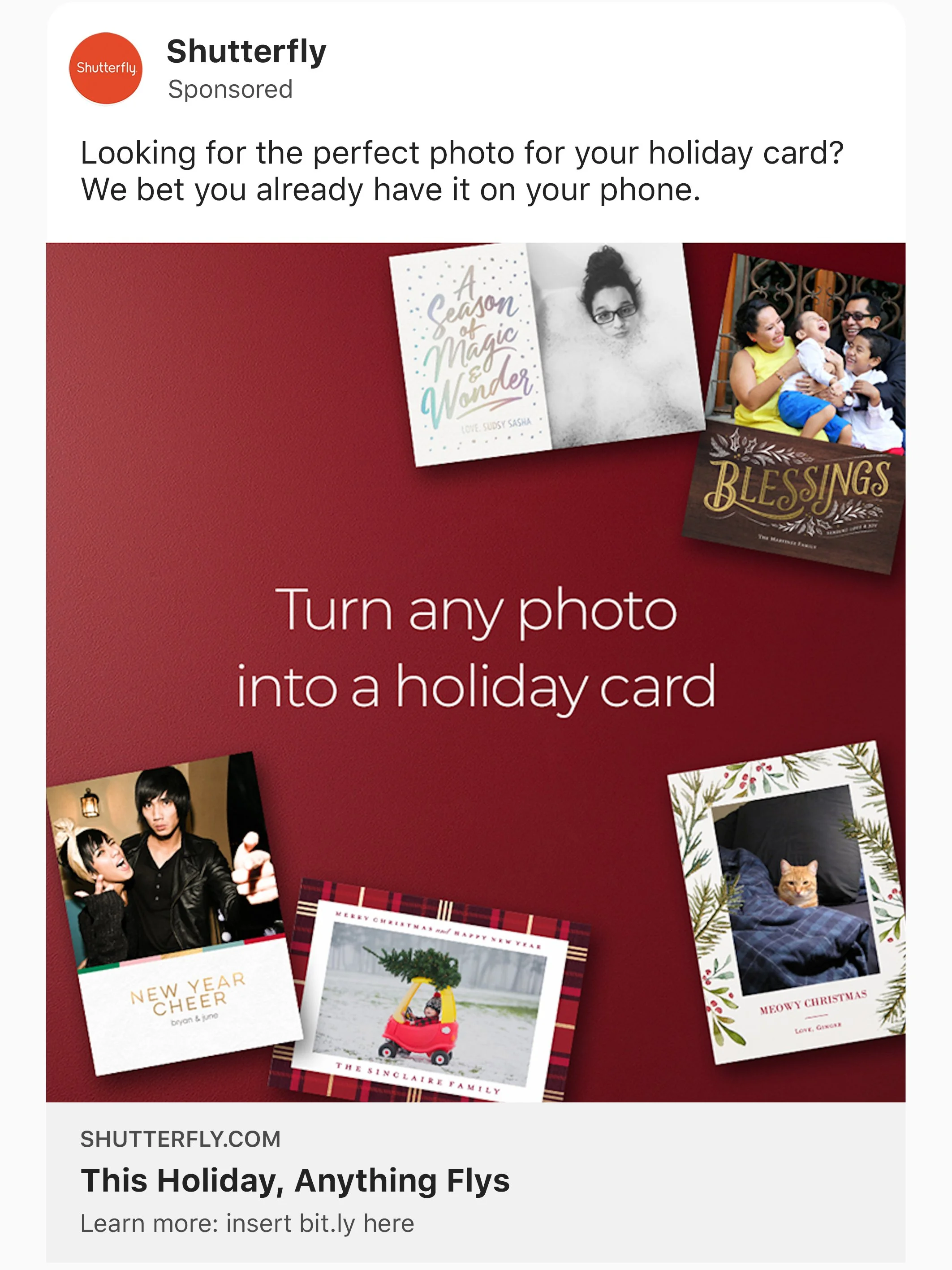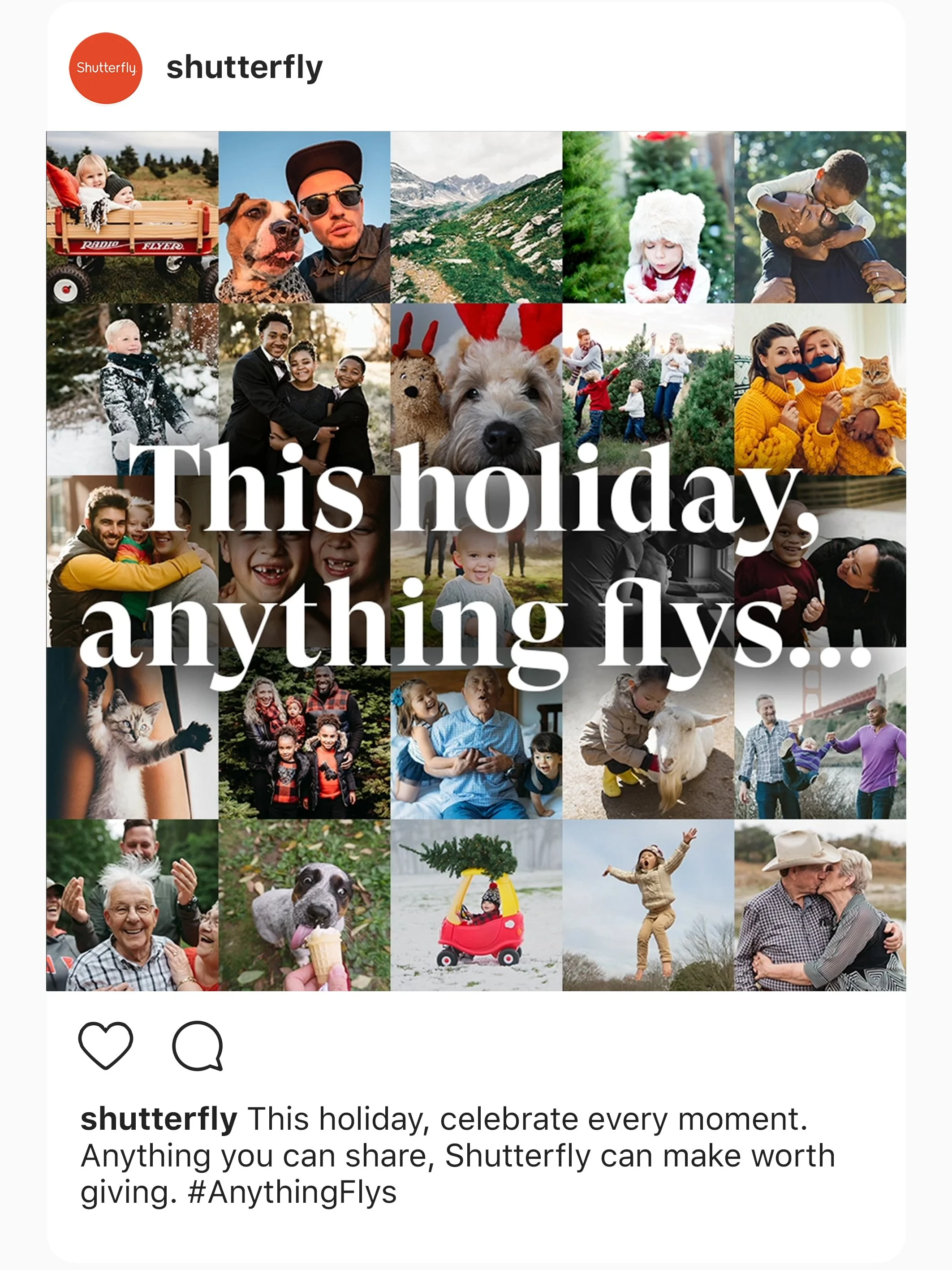 I produced both static and animated creative for a diverse range of channels, including landing pages, subcategories, email campaigns, app store (Android & iOS) paid ads, and social media content; designing assets for the AnythingFly’s multi-channel campaign that aimed to redefine gift-giving, reaching millions of customers with Shutterfly's first TV spot in three years; and producing direct mail marketing for product launches.