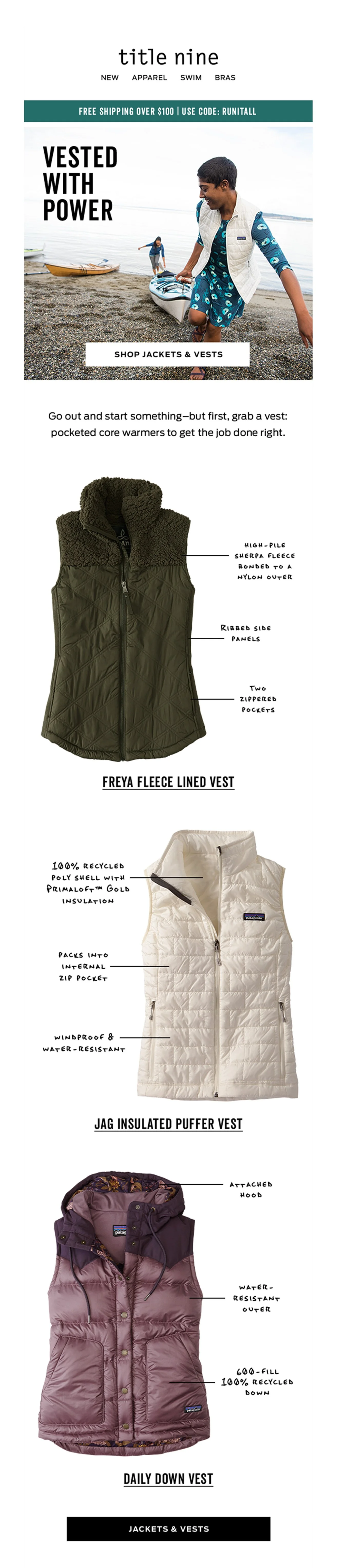 As the Email Designer (Contract) at Title Nine, I was responsible for the design, coding, and timely delivery of high-performing email campaigns that drove significant revenue.